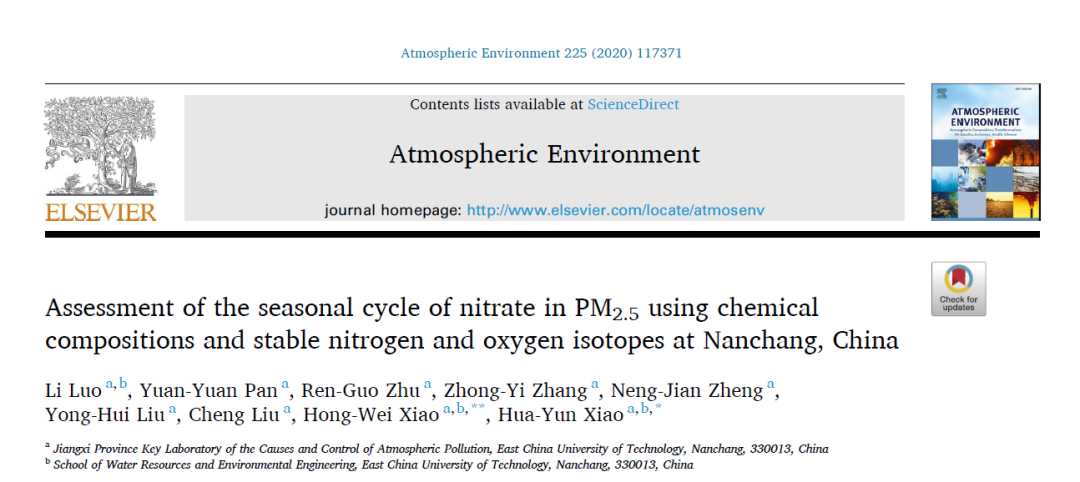 科研人员通过分析南昌市PM2.5中硝酸盐的化学组成和同位素组成,了解其季节性变化规律和形成机制,2017年9月至2018年8月在南昌市东华理工大学校园内进行样品采集,使用高流量空气采样器收集PM2.5样品,分析水溶性离子(如NO₃-、SO₄²⁻、Cl⁻、NH₄⁺等)和稳定同位素组成(δ¹⁵N-NO₃-和δ¹⁸O-NO₃-),使用贝叶斯同位素混合模型评估不同HNO₃形成途径对PM2.5中硝酸盐的贡献。